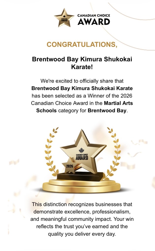 We are proud to announce that Kimura Shukokai Karate – Brentwood Bay has been named a 2026 Canadian Choice Award Winner.